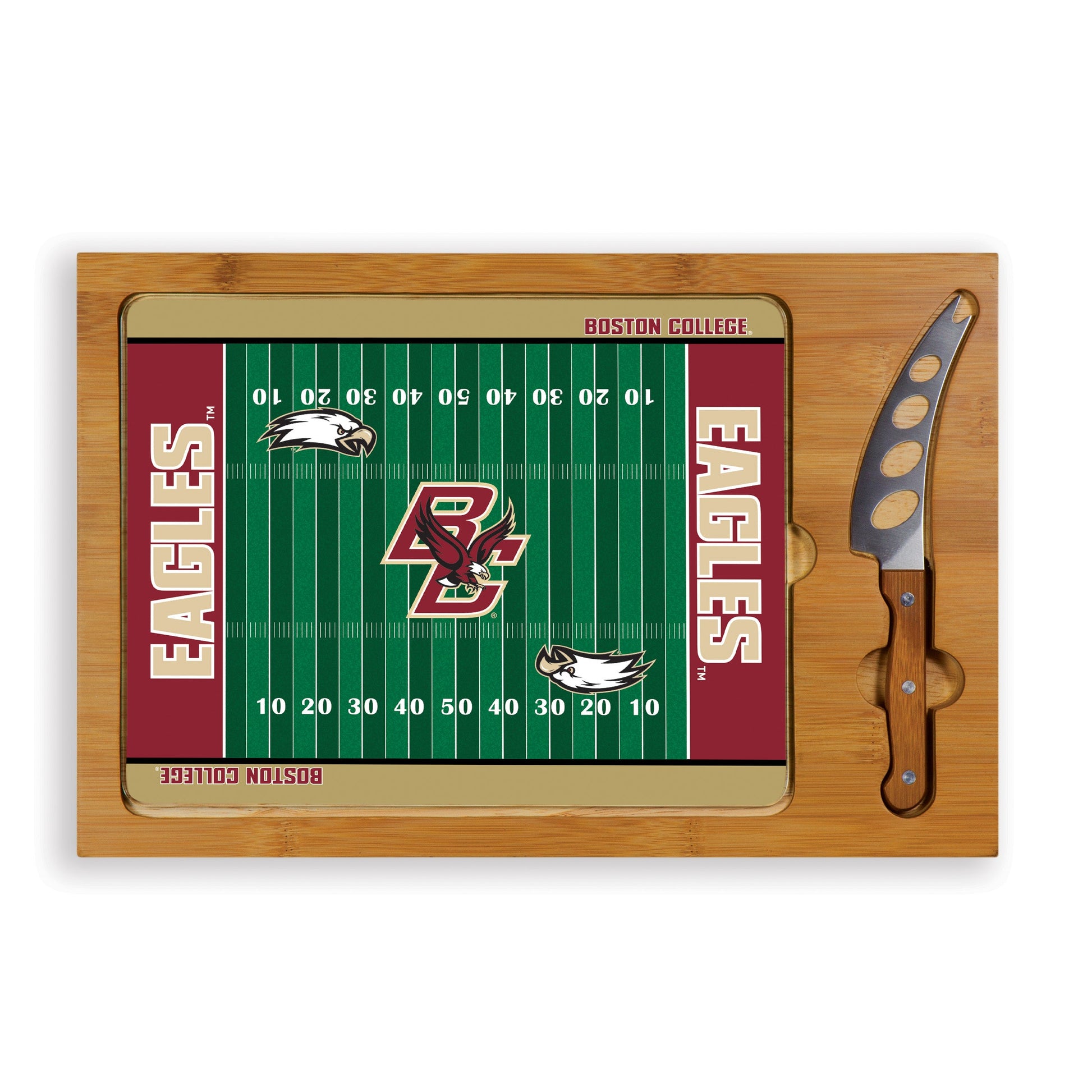 Boston College Eagles Football Field - Icon Glass Top Cutting Board & Knife Set